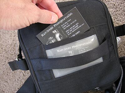 I like the business card / credential / luggage ID tag pocket in the top of each bag. This is where I keep business cards, which I can grab at a moments notice.