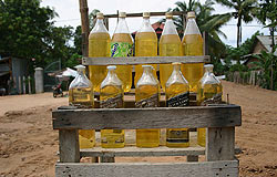 If you need to buy gas don't pass up the typical "Johnny Walker" gas station...this is how fuel is sold in places like Cambodia..."real" gas stations are few and far between, so don't hesitate to get some from a place like this. If by chance you are riding an older 2 stroke model which requires an oil gas mix...the "attendant" no matter how young he or she is, will know which kind of fuel you need. Oh, and if you need real Johnny Walker Scotch, it will probably be a bit harder to find than gasoline..