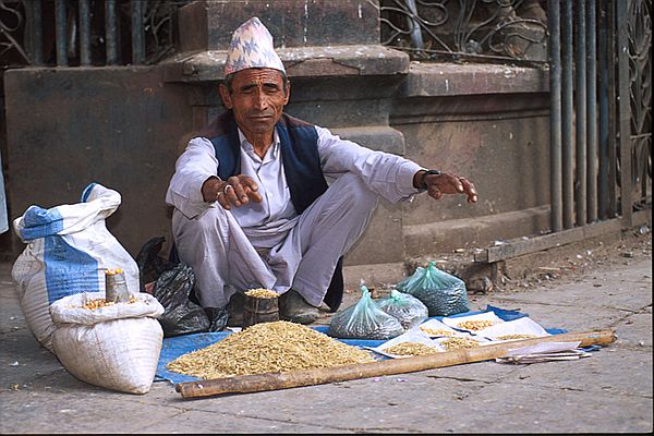 Man sitting with grain Hindu Temple Kathmandu.jpg