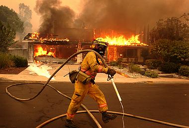 12:55 pm firefighters arrive too late to save a residence on Lorie Avenue, but they douse the raging inferno using a foam retardant in an attempt to spare adjacent homes from the same fate.