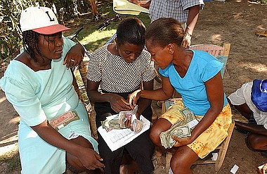 ACLAM, a local partner, women meet to obtain loans, make loan payments