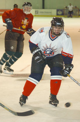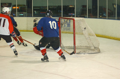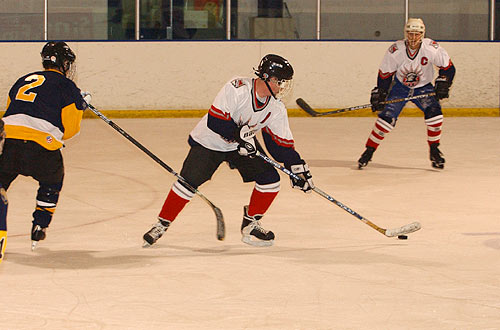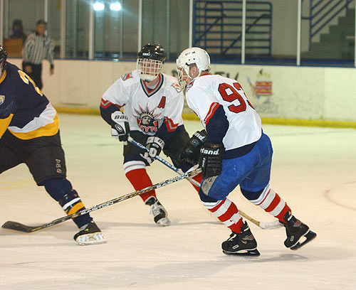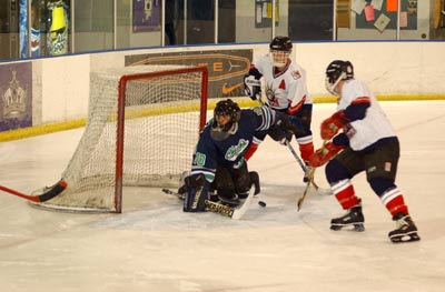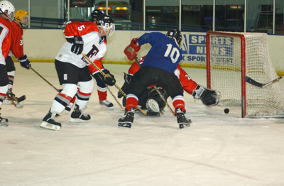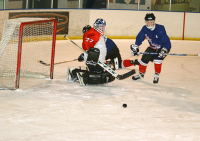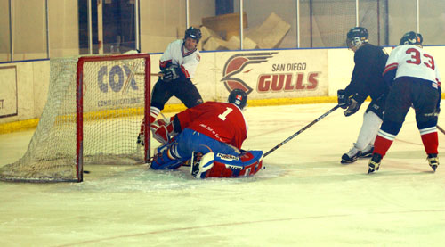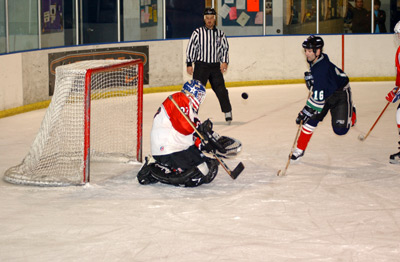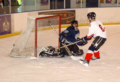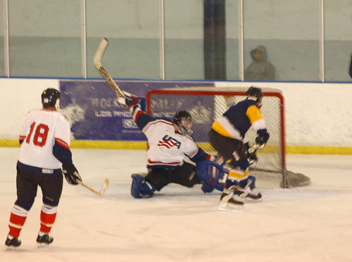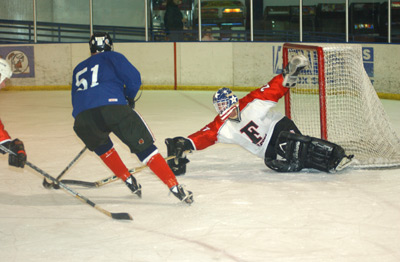 Kurt Blasena, "Mr patient", makes the goalie commit .