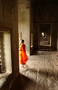 Monk walking, Angor Wat, Cambodia