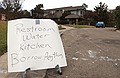 to offer. In the driveway of one home is a sign which reads, "restroom,